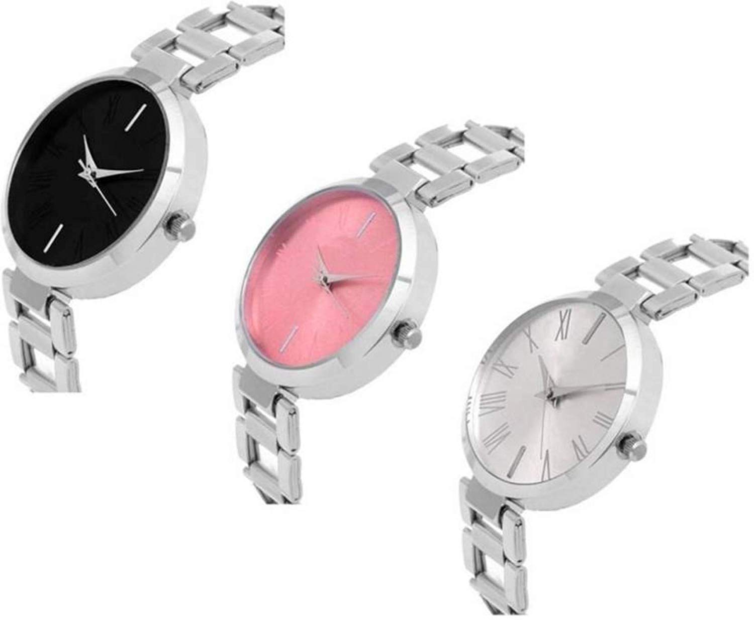 Acnos® Premium Black Pink Silver Dial Analogue Watches Combo for Girl’s and Women’s Pack of – 3(T-White-Black-Pink)
