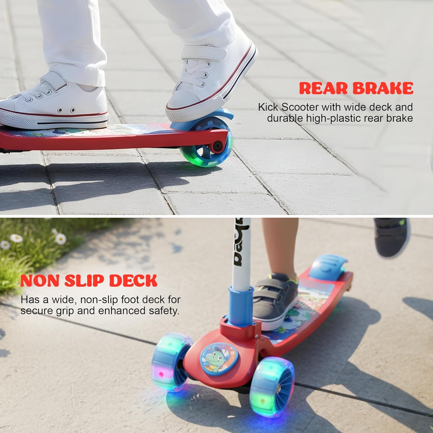 💡 LED PU Wheels for Fun & Safety: Brighten up playtime with LED PU wheels that light up as kids scoot along! These wheels not only add a fun visual element but also improve visibility during evening rides, ensuring your little one stays safe and stylish on their adventures.