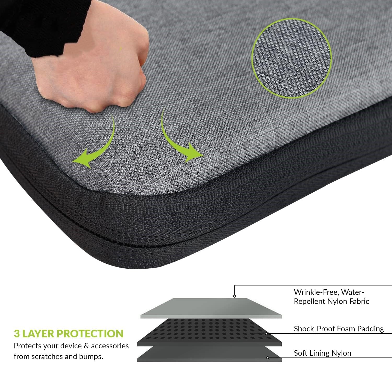 Dynotrek Dilus 15.6 inch Laptop Sleeve Case Pouch, with Double Handle Shockproof Protective Cover, Accessory Pocket, Briefcase Carrying Computer Hand Bag, HP, ASUS, Dell, Lenovo, Acer -Grey