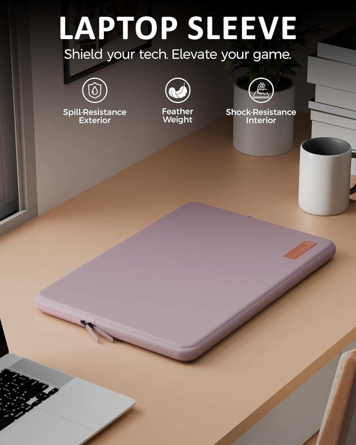 ▶ SPILL-RESISTANT OUTER, EASY CLEAN: Coffee splash on the desk? Drizzle from a bottle in your backpack? The exterior fabric is treated to repel light spills and resist staining, buying you time to wipe and go. It cleans with a quick cloth pass—no harsh chemicals needed—and does not develop the chalky residue or odor common with bargain sleeves. Daily practicality, minus the stress about rings, smears, and light rain exposure.