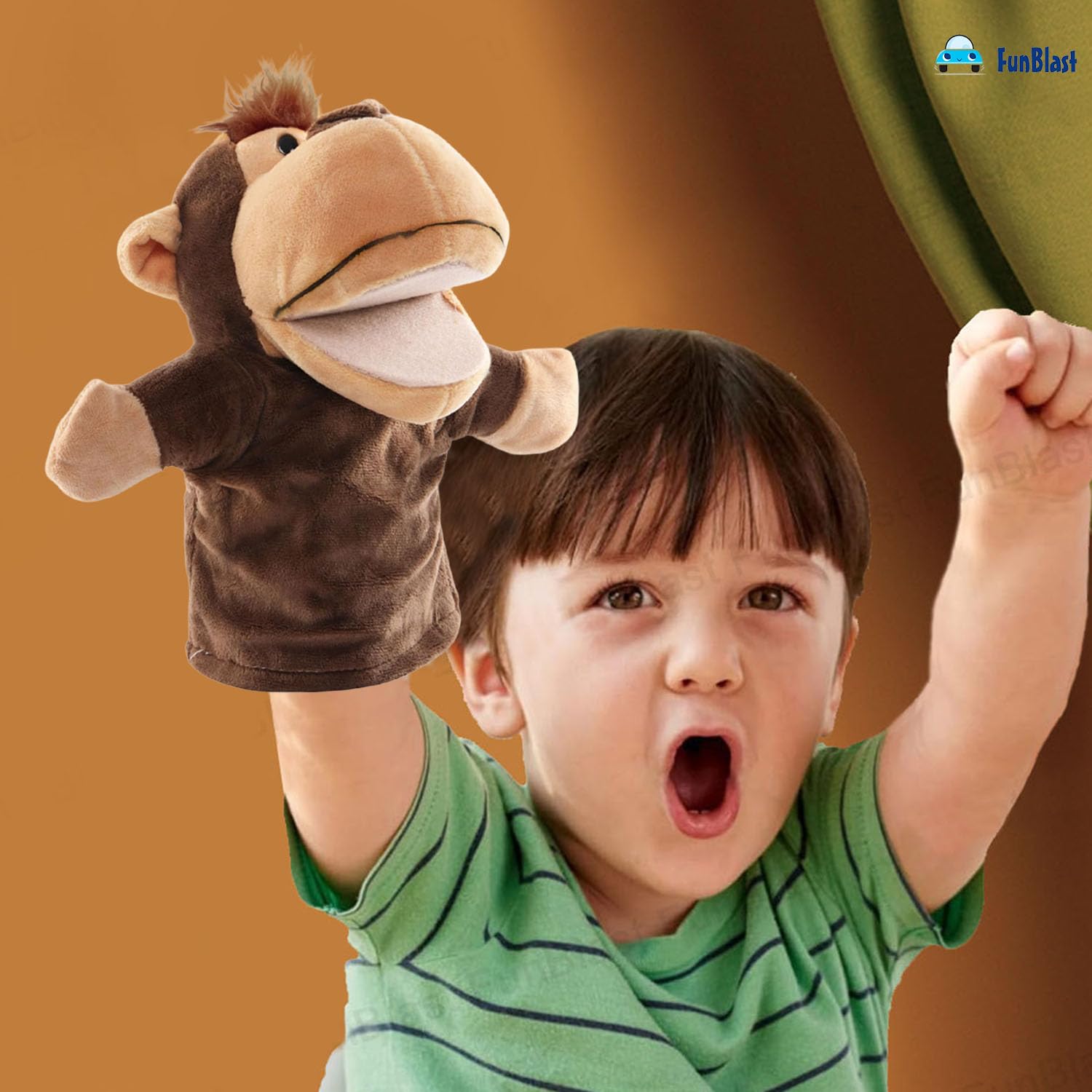 FunBlast Hand Puppets for Kids – Plush Animals Hand Puppet with Movable Open Mouth, Story Telling Puppets for Kid, HandPuppet Toy, Fun Play Learning Toys (Monkey)