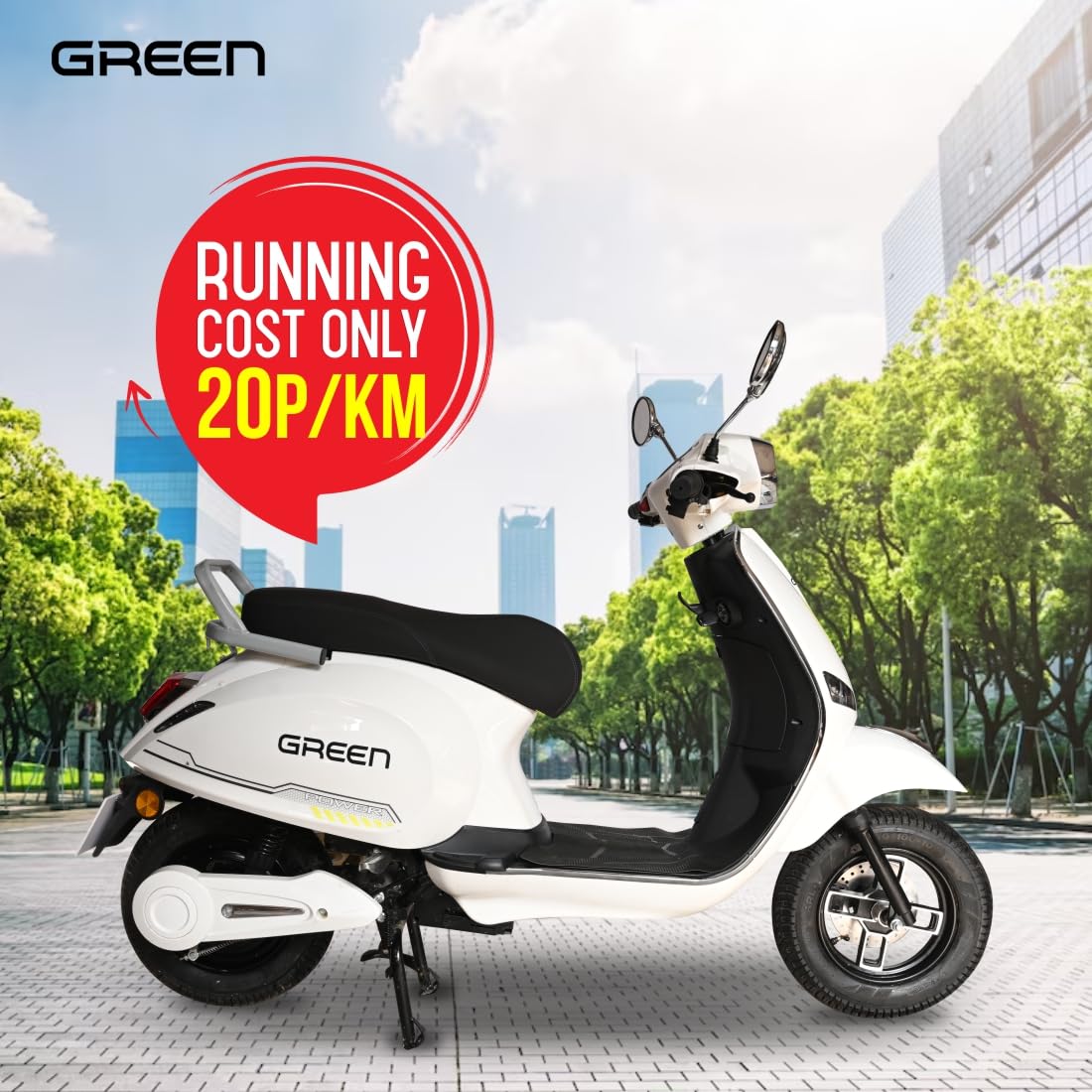 Green Falco Low Speed Electric Scooter Non RTO 80 KM Range with Portable Charger (White)