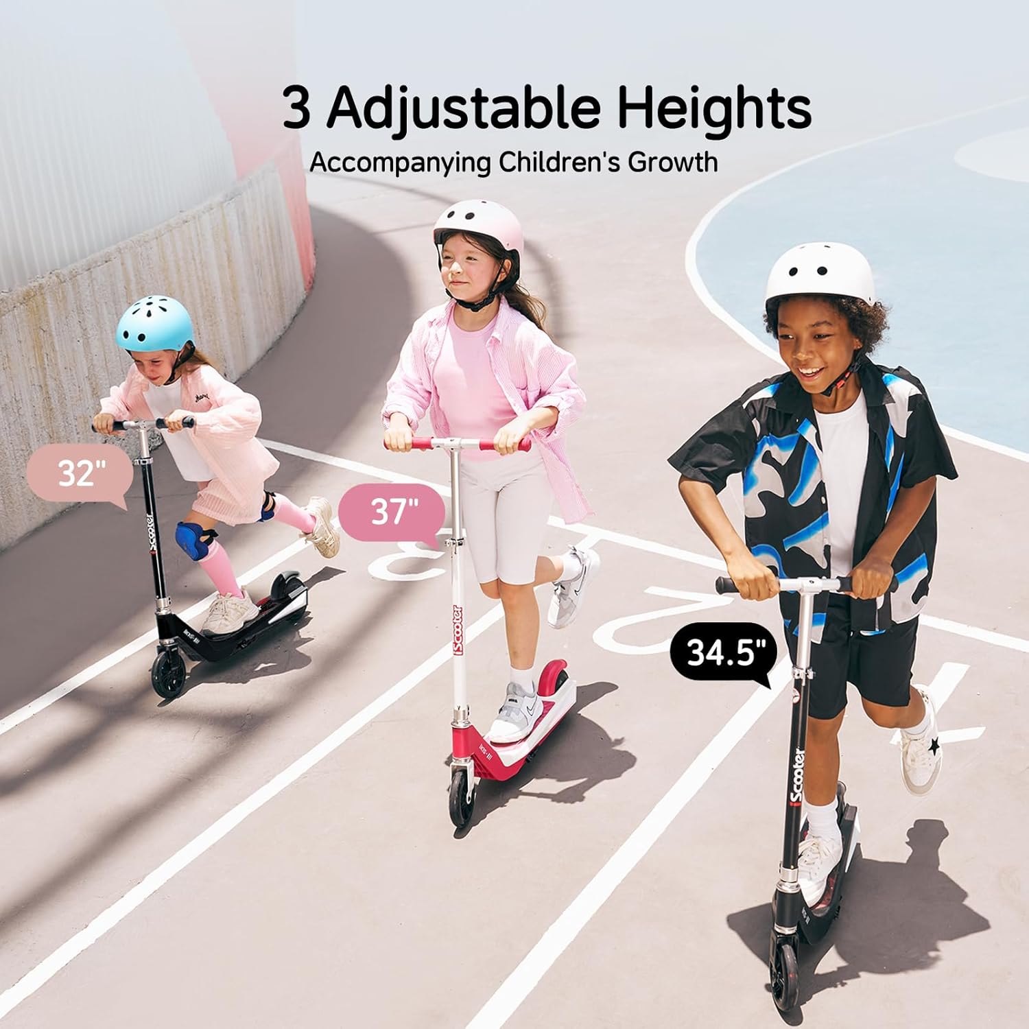 【3 – Level Height Adjustment】:The IK1S escooter features 3 – level height adjustment at 32″/34.5″/37″, perfectly matching the growth needs of kids aged 6 – 10 within 110LBS