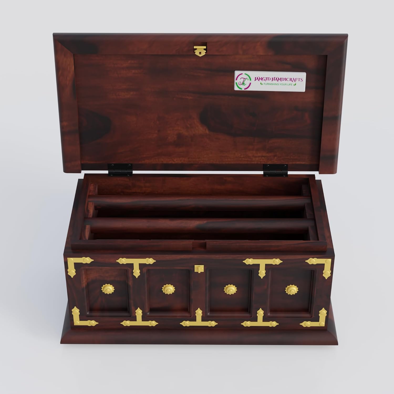 Jangid Handicraft Wooden Bangle Storage for Women | Traditional Royal Rajasthan Design Jewelry Organizer | Multi-Purpose Bangles Holder, Vanity Box and Decorative Storage Trunk for Accessories (Brown)
