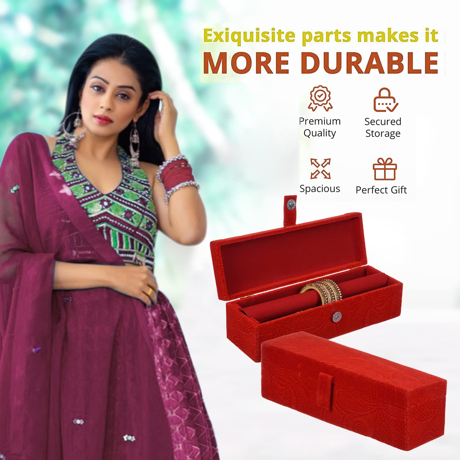 🌱 VELVET COATED Velvet CRAFT: This Box is Crafted from eco-velvet and MDF, and features a velvet-lined interior to protect your bangles from scratches and damage.this is a reliable and stylish choice for storing and organizing your precious bangles.