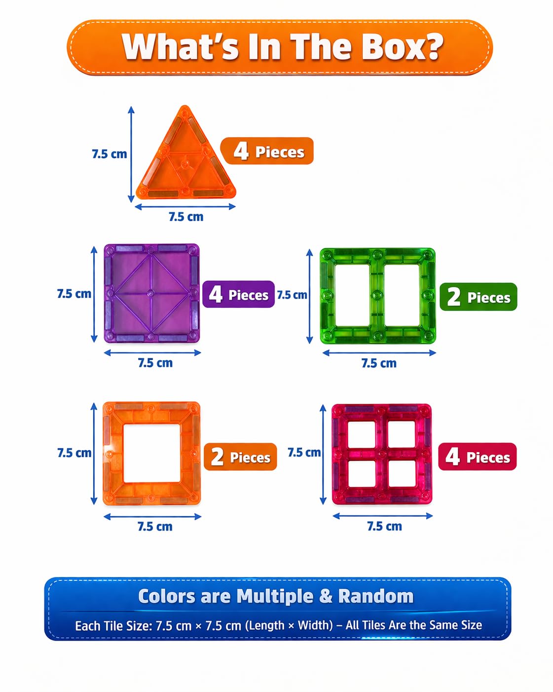 🧲 STRONG & SECURE MAGNETIC CONNECTION: Built with powerful embedded magnets that snap together easily, allowing kids to create stable 2D & 3D structures like castles, rockets, and vehicles.