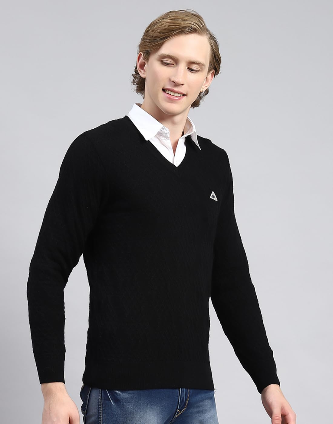 Discover an extensive selection of Monte Carlo brand products for Men, Women, Kids, and Home furnishings. Choose from a diverse range of items that suit your individual style and reflect your personality, ensuring you always make a statement with confidence. Explore a wide array of categories including Men’s Shirts, T-shirts, Trousers, Sweaters, Jackets, Sweatshirts, Coats, Denims, and much more, allowing you to express yourself through fashion. Monte Carlo black self design v neck sweater. Made from pure woolfabric.