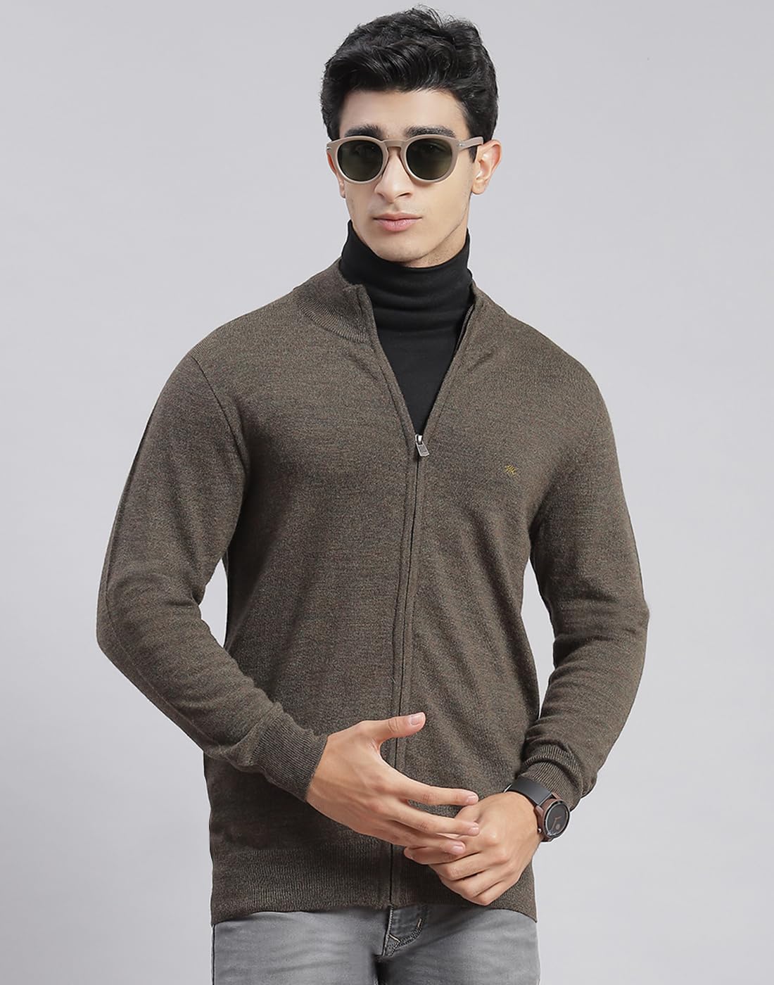 Monte Carlo Men Regular Fit Mock Neck Solid Zip Closure Full Sleeve Pullover