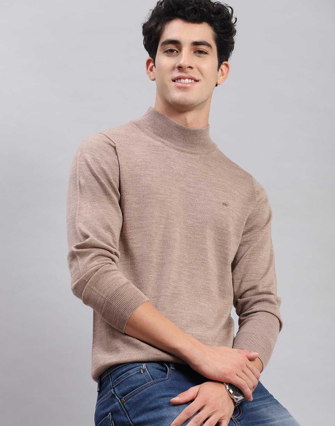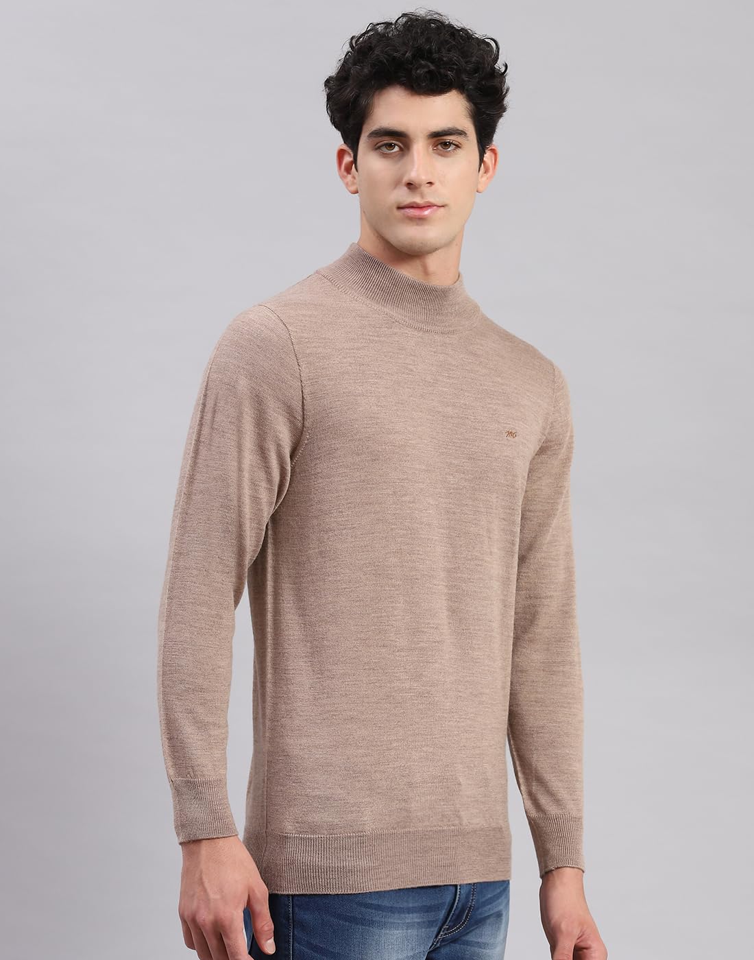 Monte Carlo Mens Green Solid Turtle Neck Full Sleeve Pure Wool Casual Sweater. Made from Pure Wool fabric.