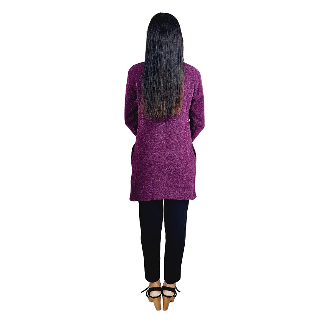 Women Ladies Girls Warm Winter Woolen Sweater Purple Jacket