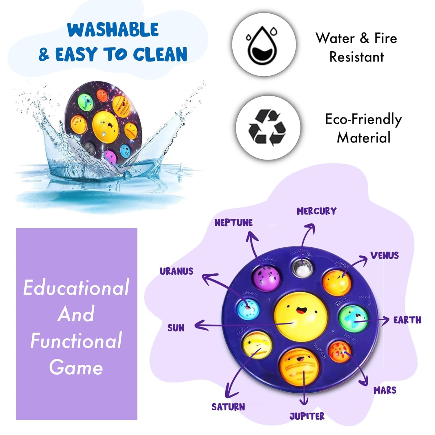 BEST GIFT FOR ALL OCCASSIONS AND YEARS : These popit space toy push bubble toys are great for all kinds of people, office decompression, autistic children. A great gift for kids Birthday, khoi bag filler, pinata bag distribution or any home parties or big happy birthday parties. Kids of any age like 1 year, 2 year, 3 year, 4 year, 5 year, 6 year, 7 year or above will just love these pop it up planet of solar system toy and keep them around in thier room, bags. Our pop toys for kids are made of safe and durable material which is non-toxic. So you can give your kids to play with this planet toy and you don’t have to worry about the safety. Best solar set simple dimple pop it ,popit for kids.