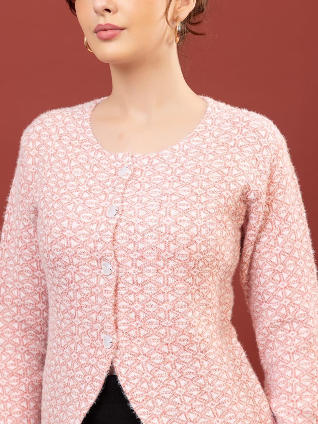 Prashar Women’s Woolen Tulip Hem Cardigan | Round-Neck Warm Knit Sweater with Button Closure | Cozy Winter Layer for Casual, Work & Travel Wear