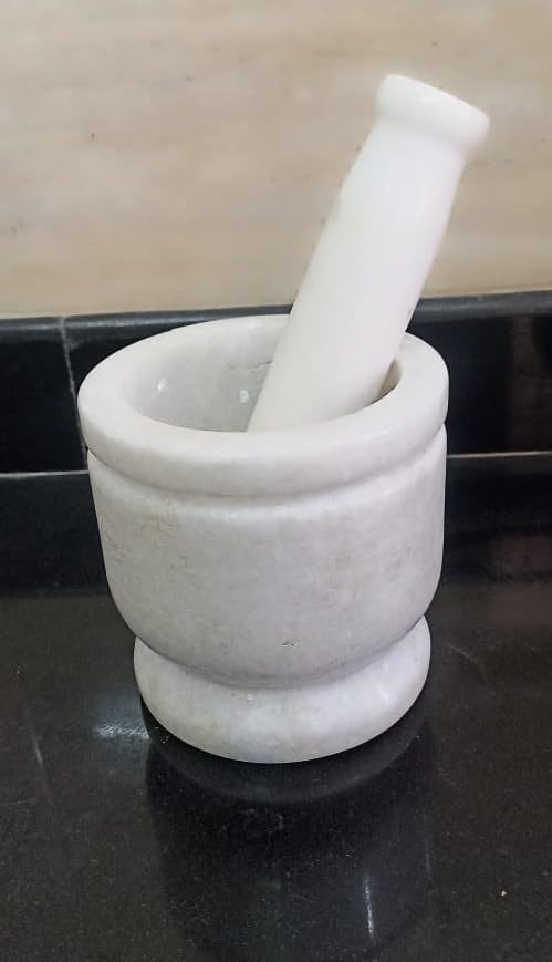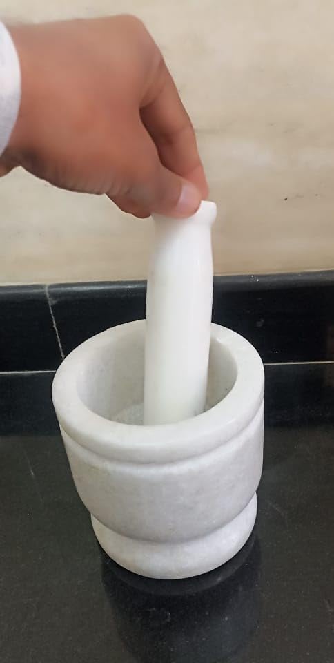 Brings Hand-crafted luxury to redefine your home decor & utility. A kitchen essential Mortar and Pestle made out of Marble, Granite.