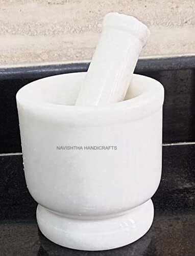 Rajasthan Art Large Marble Mortar And Pestle Set Stone Grinder/Khara/Khalbatta/Imam Dasta/Ohkli Musal/Okhli Masher For Kitchen Or Home (5X5 Inch, White)