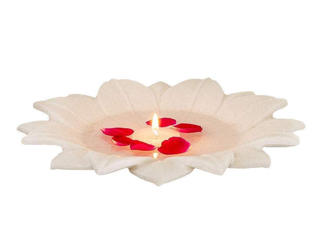 Rajasthan Art White Marble Stone Lotus Floral Bowl – 6 Inch, 1 Pc, White