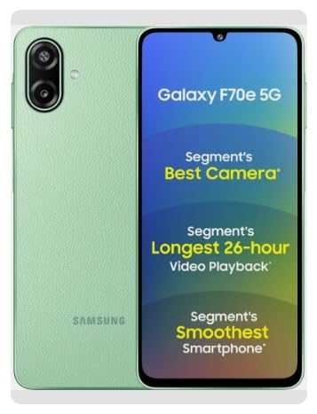 Samsung Galaxy F70e 5G (Limelight Green, 128 GB) (6 GB RAM) | 6000 mAh Battery | Dimensity 6300 | Octa Core Processor | 6.74″ PLS LCD Display |