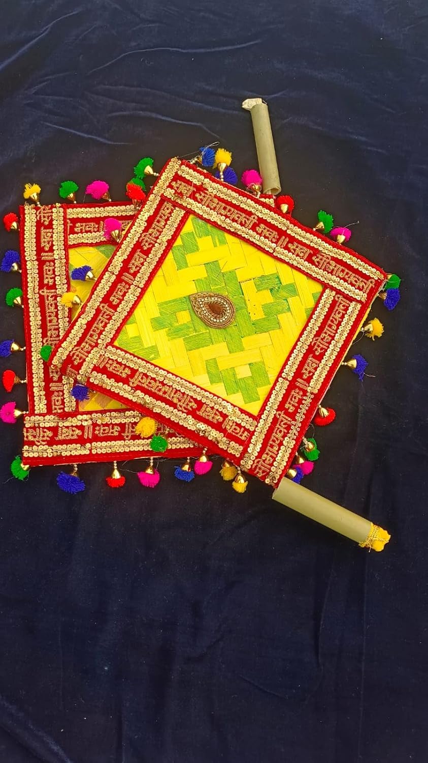 Sudha hast udhyog. Vet Savitri Puja purpose decorative baas pankha, bena,hand fan, hand woven and most importantly decor with beautiful laces.