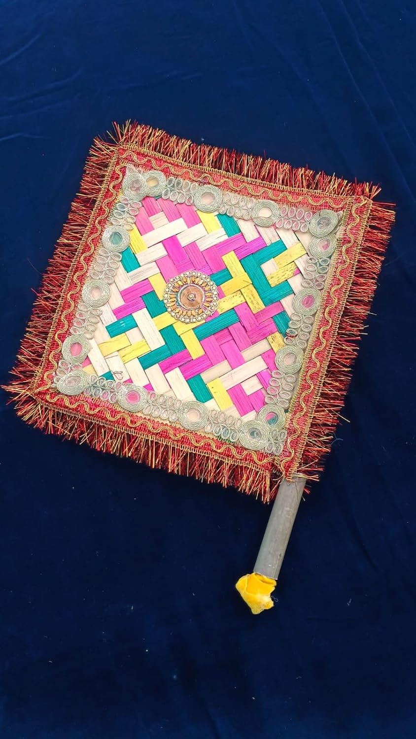 Sudha Hast udhyog. Vat savitri purpose hand made decorative pankha, Bena, pankha, handfan.bamboo hand fan . Decorate with premium quality of lace. pankha made from bihar, with lots of love.tha making of Bamboo handicraft is perches the most universal of all the crafts practiced by a large number of artisans scattered throughout the state. It is practiced as a household industry and no mechanical device is used.