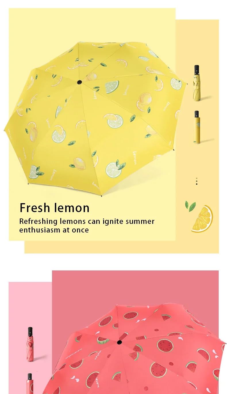 ππ Fruity Fun UV Protection Travel Umbrella β Compact, Lightweight & Stylish for Summer! ππ Turn every rainy day or sunny stroll into a fruity fiesta with our Fruity Series Compact Folding Umbrellas! Designed to blend fashion with function, these umbrellas feature delightful prints of watermelon, lemon, avocado, grapefruit, and peachβeach bringing a splash of freshness and joy to your everyday accessories. Whether you’re shielding from rain or protecting against harsh UV rays, these umbrellas offer superior portability, vibrant aesthetics, and practical coverage. Perfect for adults, teens, or kids who love to stand out in style!
