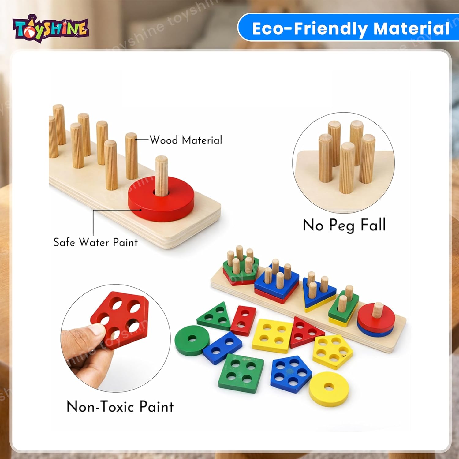 Cute Design: Classic shape sorter toys, 5 different shape with fitting hole for post, round shape, 5 different bright color perfectly sized for toddlers’ hands, also great choice as travel toys, build early shape, color and size differentiation skills