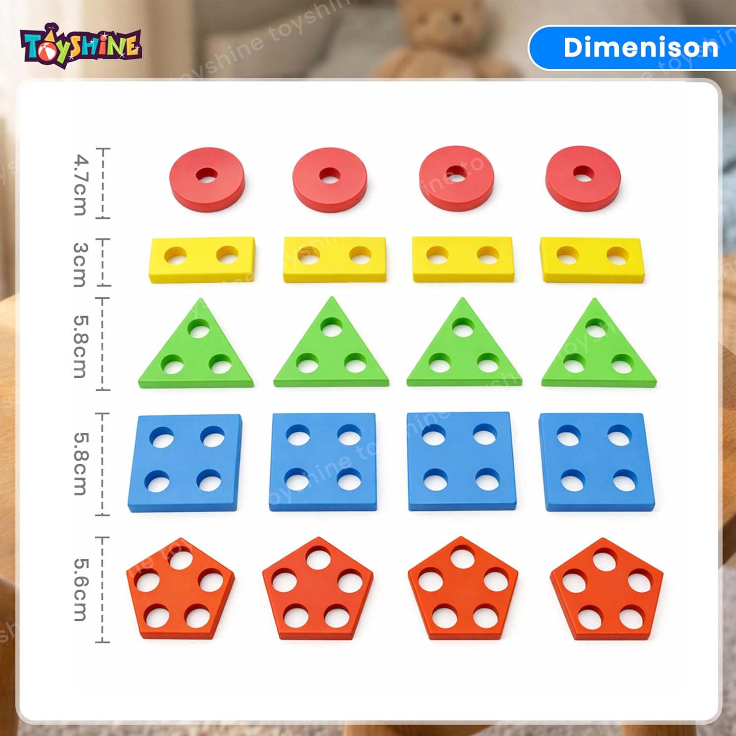 How to Play: Multiple paying way, select and name the geometric shape or color, stacking the block puzzle and march it in right place (posts that fits the hole of the blocks) etc.; Great Toys: Great brain stimulating toys, teaches about colors, shapes, matching, logic, fine motor skills , inspire toddler’s imagination, hand-eye coordination and promote their physical and intellectual development.