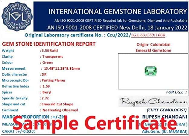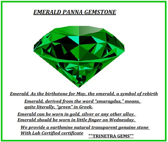 TRINETRA GEMS 6.95 Carat Emerald Gemstone Natural Attractive Zambian Cushion Shaped Hara Panna Stone Original Cetified By Lab 7.45 Ratti Real Emerald Panna Stone