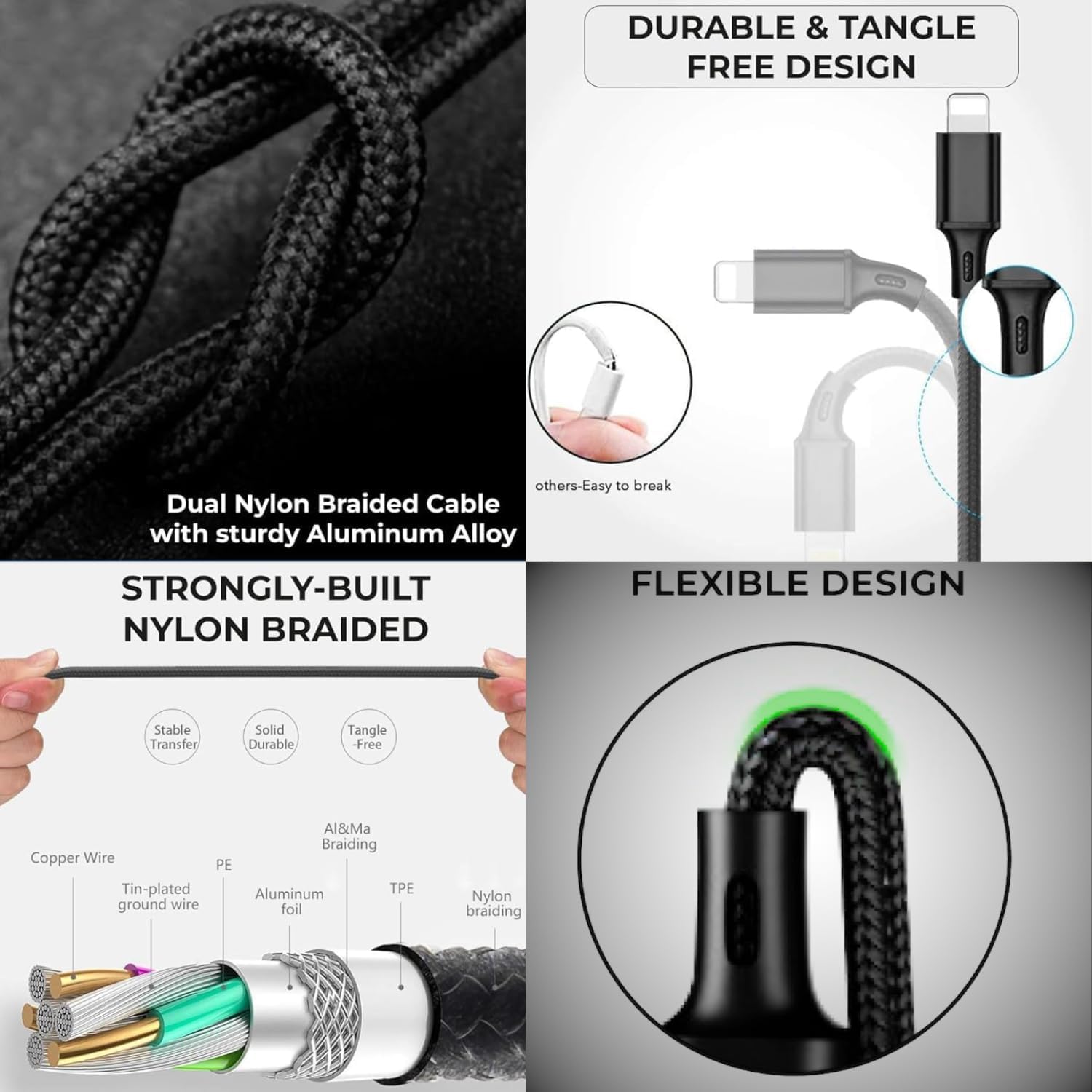 This 3 in one charging cable is crafted with nylon braided wire giving you an extra tough braided cable with 10000+ bends lifespan cycle. Cable is built with best materials to withstand against any rough usage The usb to multiple charging cable supports 3A fast charging, allowing devices to charge more quickly compared to standard charging cables. Simultaneously charge multiple devices for added convenience The multifunctional cables offers universal compatibility, seamlessly connecting with multiple devices via USB-C, micro-USB, and connectors Please note that this multi pin charging cable is designed for charging purposes only and does not support data transfer This durable, flexible 1.2 meter cable provides the ideal length for hassle-free charging, eliminating the need to find nearby switchboards. Multi charging cable designed for convenience, allowing easy device use while charging The nylon-braided, tangle-free multi cable combines durability with style, providing a sleek solution for hassle-free charging. Its premium design ensures flexible & making it ideal for on-the-go use without annoying tangles Built for daily, rugged use, this 3 in 1 cable is designed to withstand frequent plugging and unplugging with ease. Its durable connectors ensure reliable performance, allowing worry-free, long-lasting use Extended 6 Month Brand Warranty for 3 in 1 Cable from the brand. No questions asked and replaced for any manufacturing defects. Register in brand website to avail Warranty