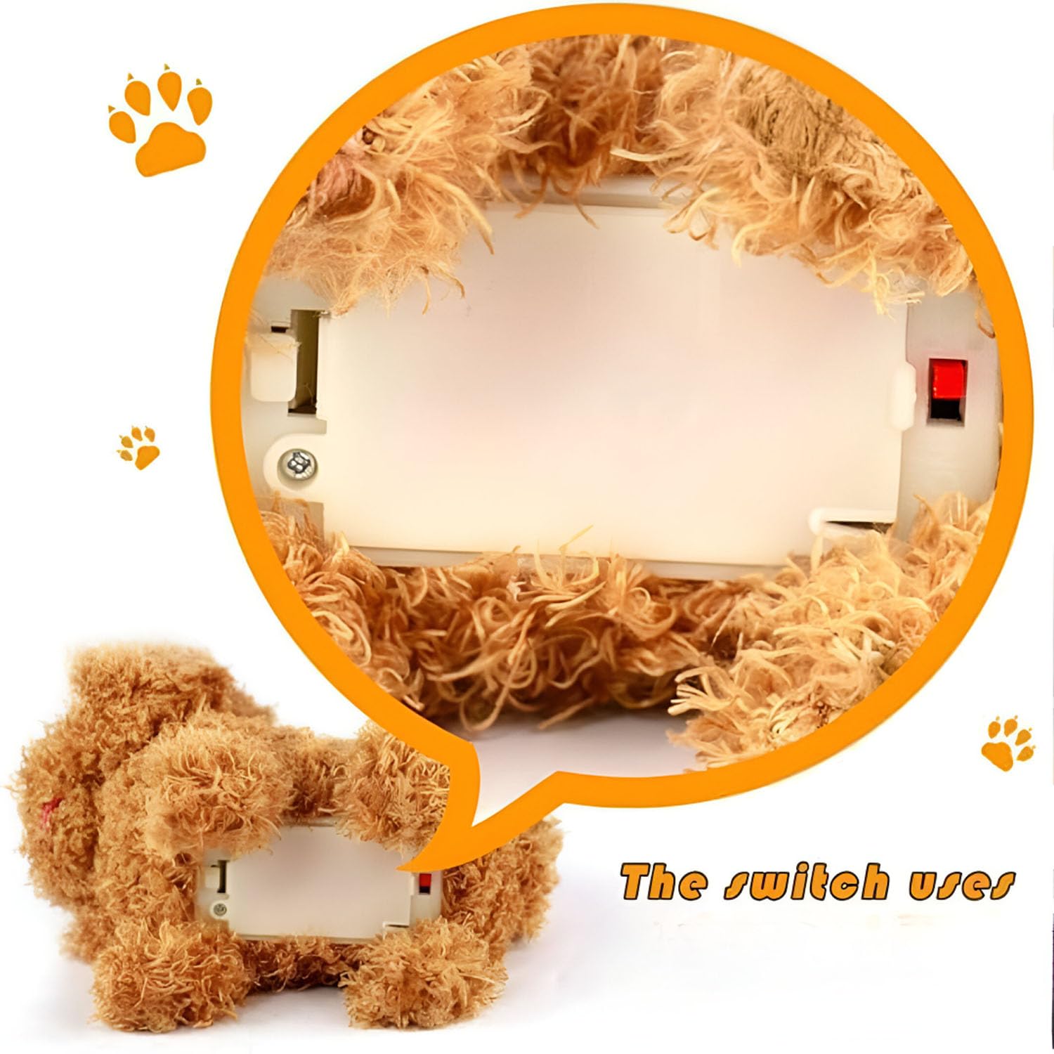 Interactive fluffy dog toy that walks forward, barks happily, responds with cute movements, and wags its tail to keep kids engaged and entertained.