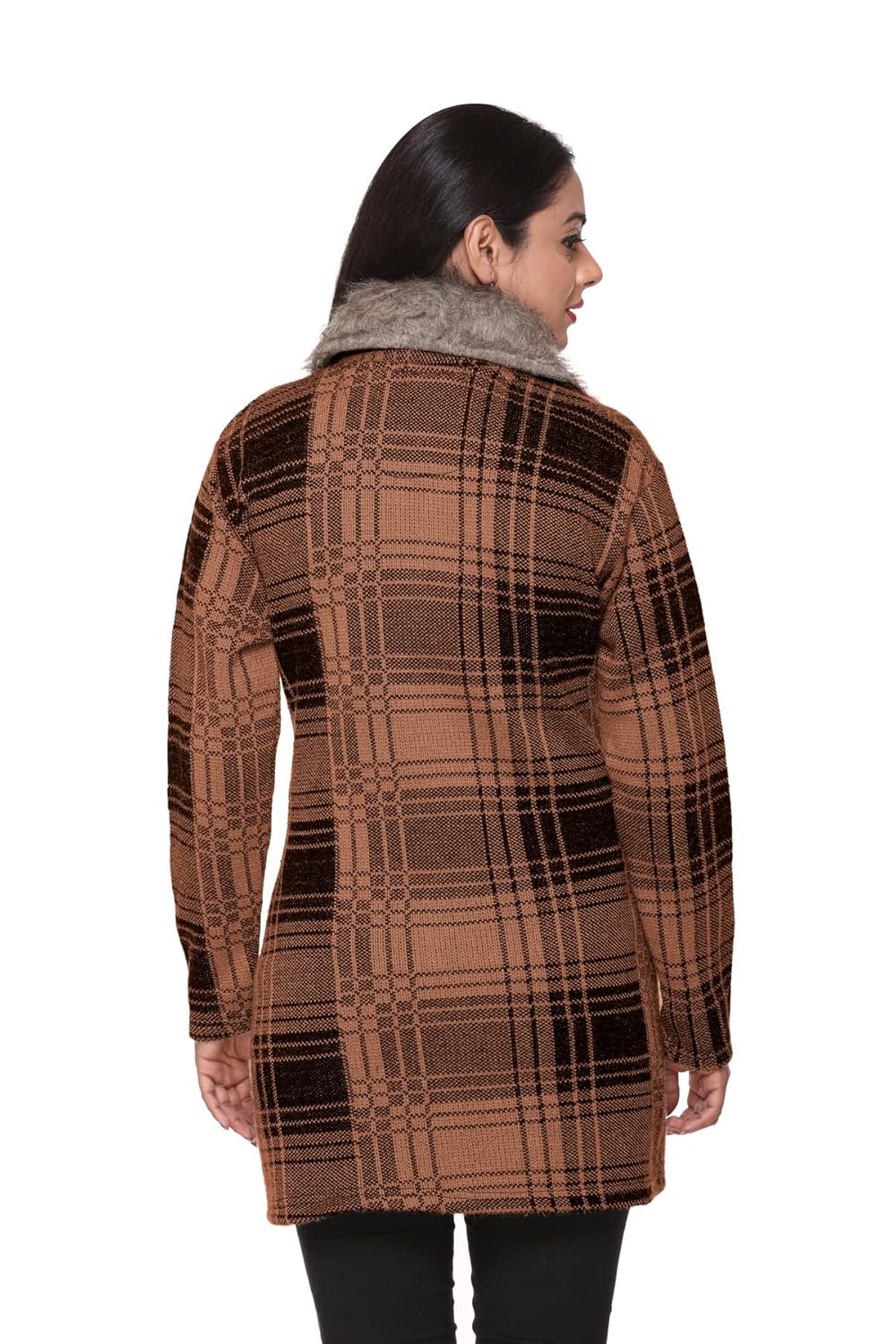 Women Woolen Buttoned Collar Neck Stylish Party Winter Wear Coat Cardigan Sweater